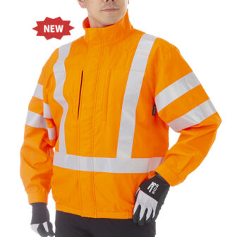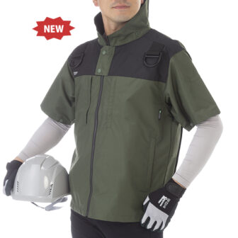ターンナップ裾で風漏れを抑え、長時間の作業でも快適フィット。前後フルハーネス対応・脇ファンタイプで冷却効率を高めつつ、安全性と作業性を両立。服素材…